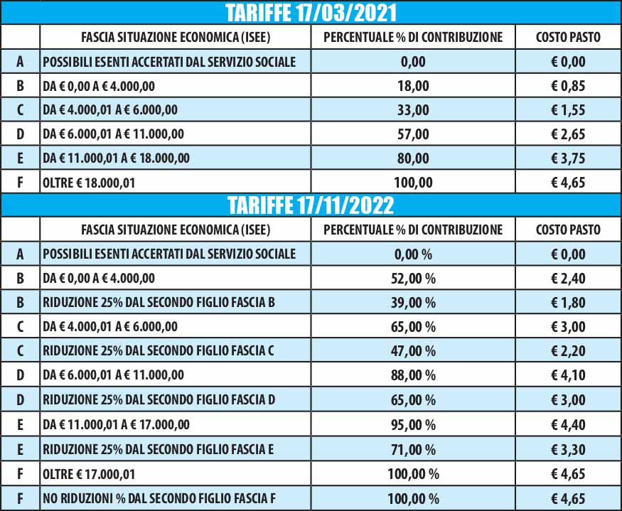 Una contraddizione evidente che non è passata inosservata e che certamente pone qualche interrogativo. A che serve infatti definire i costi dei pasti in base all’Isee se poi gli aumenti non tengono conto dell’Isee? Le tabelle che potete vedere qui a lato e che derivano da quanto scritto nelle delibere menzionate segnalano chiaramente questi dati e paiono indicare queste percentuali che però non paiono essere affatto proporzionate. Triplicare il costo pasto della mensa con 4mila euro di reddito Isee è una cosa ragionevole? E immaginare di cambiare le “regole” di una partita a metà campionato (in questo caso modificare le tariffe a metà anno) può essere accettabile?
