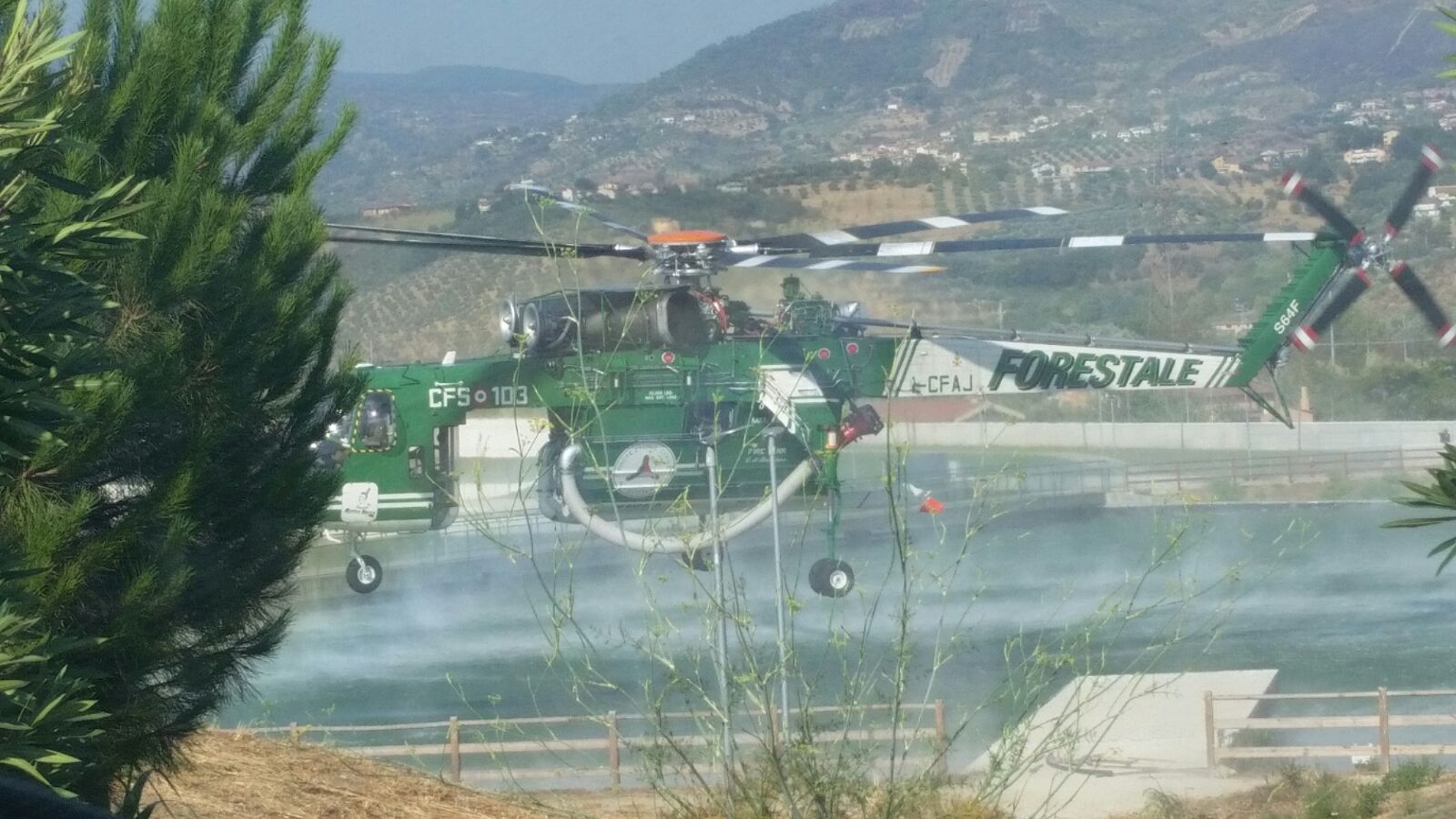 L’incendio si è sviluppato lungo le colline ai confini di Cosenza causando anche apprensione tra gli abitanti in quanto le fiamme si stanno progressivamente avvicinando alla città dove è in azione un elicottero della forestale che sta caricando acqua (GUARDA) dal parco acquatico di Rende non ancora in funzione.