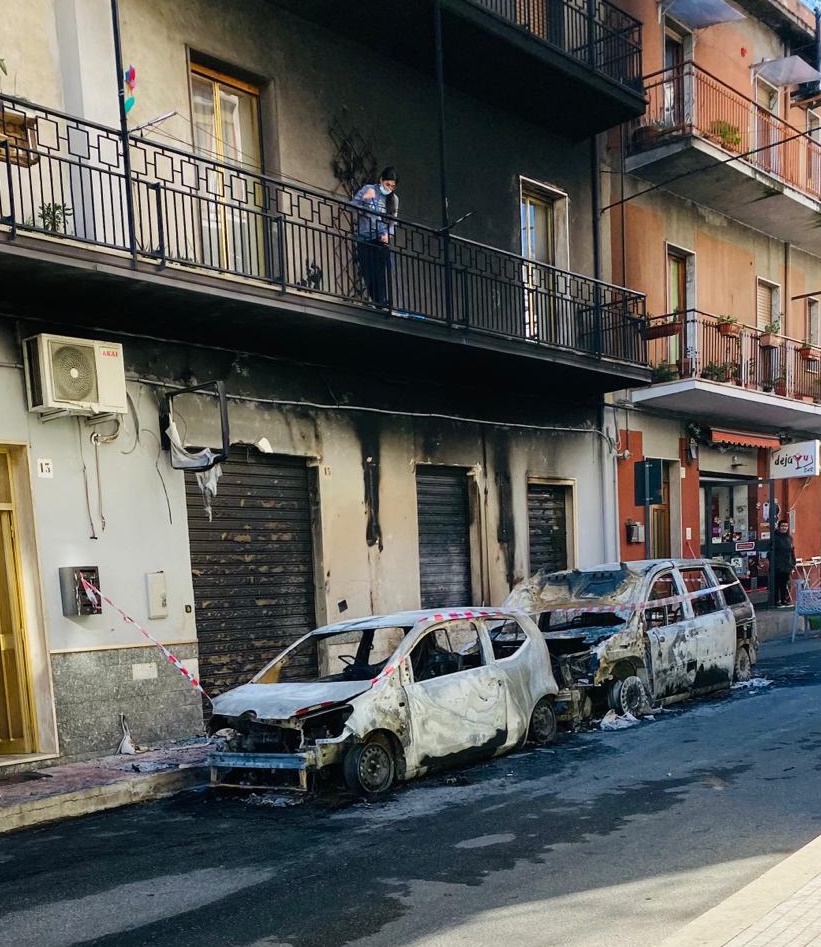 Sono circa le due di notte e il quartiere si anima: c’è chi scende per strada e chi dai balconi getta acqua sulle due auto che hanno preso fuoco, probabilmente per l’origine dolosa dell’incendio.