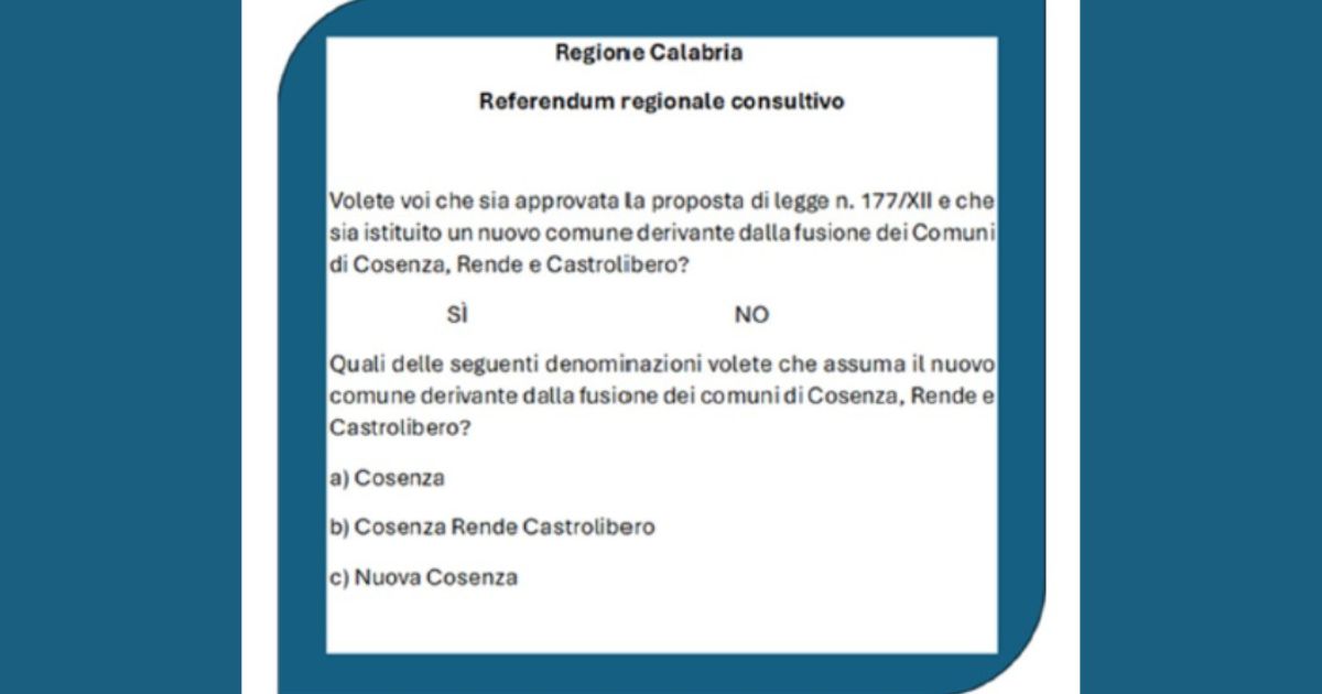 LEGGI ANCHE: Cosenza: città unica, verso il referendum. Alle urne il 1° dicembre