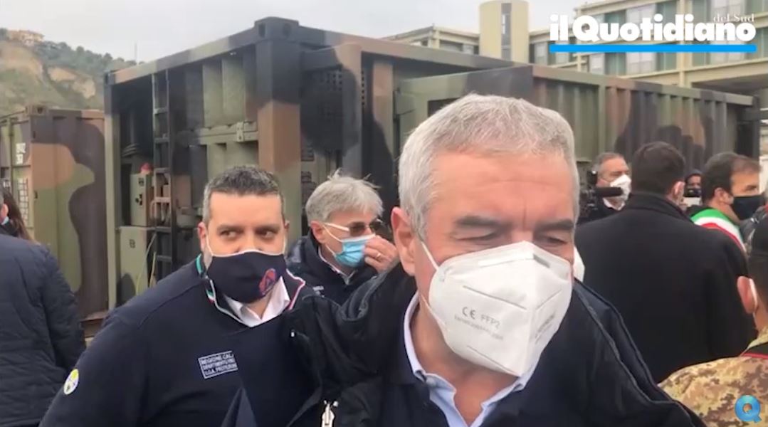 «Questo impianto – ha detto Angelo Borrelli – funziona bene, le Forze armate sono consolidate e ci stanno aiutando in tutto il Paese. Dunque tutto va come previsto. La Calabria avrà tutto quello di cui avrà bisogno. Emergency ci aiuterà nella gestione delle strutture temporanee, una delle quali verrà installata a Crotone. Per Locri e Vibo Valentia invece si stanno valutando soluzioni utilizzando strutture esistenti. La valutazione la fanno Regione, Protezione civile regionale nazionale e il ministero della Salute».