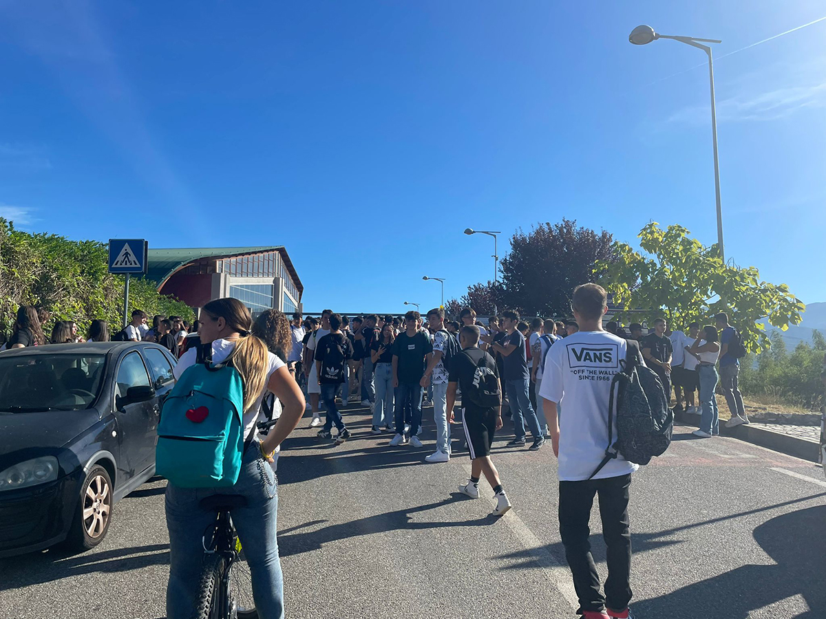 Un momento della protesta dello scorso febbraio al "Valentini-Majorana" di Castrolibero