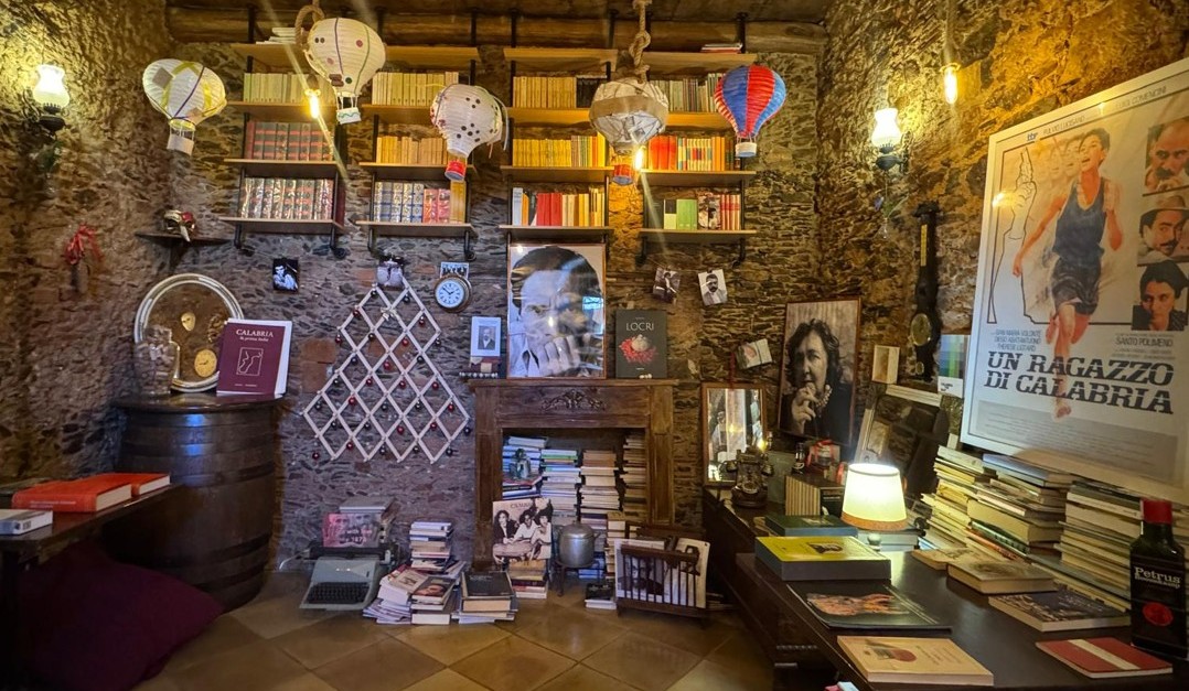 E poi i libri. Ovunque. Libri come ossa, come semi, come fondamenta. รˆ una biblioteca, sรฌ. Ma non solo. รˆ rifugio e soglia, laboratorio poetico e presidio culturale. Una fenditura luminosa nel quotidiano. Qui si ospitano performance, presentazioni, incontri. Piccola nelle dimensioni, enorme nella capacitร  di accogliere saperi, esperienze, ricordi. Una stanza del mondo, una casa della parola, dove artisti, viaggiatori e pensieri trovano dimora. Ci siamo immersi in questa magica atmosfera per ascoltare una storia che parla di talento e resilienza. Una storia di Calabria. Di quella Calabria che non chiede piรน il permesso di esistere, che non fugge, ma resta. E proprio restando si apre a geografie lontane.