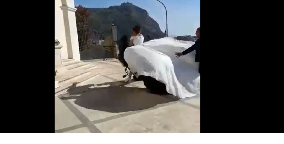 VIDEO - La sposa arriva a cavallo ma l'animale stramazza a terra per il caldo