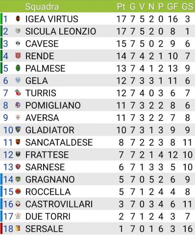 Resta delicata la situazione per le calabresi di coda. Castrovillari e Sersale, dopo sette giornate, non hanno mai vinto. Bisogna cambiare passo, ma finora, per svariati motivi, non ci sono riusciti. E la classifica lo evidenzia. Il Roccella, invece, con l’exploit di Torre del Greco, nel recupero odierno, ha finalmente rotto il ghiaccio. Una gran bella sorpresa, inattesa, meritata. Ma adesso bisogna insistere, perché si resta sempre nelle zone basse della classifica.