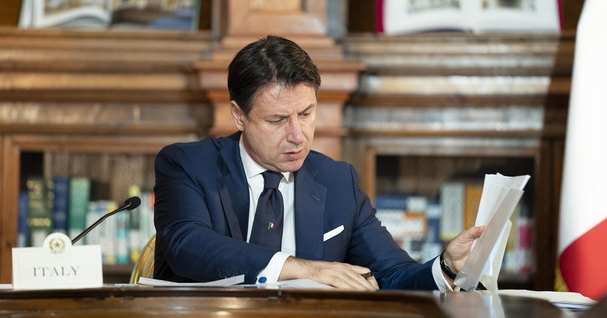 Il premier Conte in videocollegamento con Ursula von der Leyen e David Sassoli