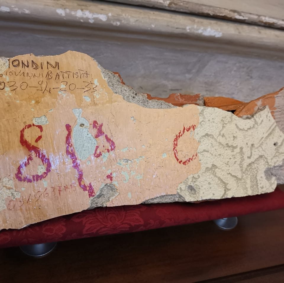 La teatralità dello spazio è sottolineata dalla cantoria lignea in controfacciata ma, soprattutto, dai quattro balconcini che dialogano armoniosamente con i gruppi di colonne affrescate dal Bibiena e che dilatando lo spazio, realizzano un effetto di maestosa solennità. È questo il luogo abitato dai poeti e dai loro versi. In questo scrigno è possibile restare inchiodati guardando il Muro degli Angeli: l’unico frammento rimasto del muro della casa di Alda Merini dove lei “nata il ventuno a primavera” che “non sapeva che nascere folle,/ aprire le zolle / potesse scatenar tempesta /” descriveva, disegnava, appuntava numeri di telefono e non solo. Si tratta di una recente acquisizione che si va ad aggiungere al vasto corpus della collezione museale.