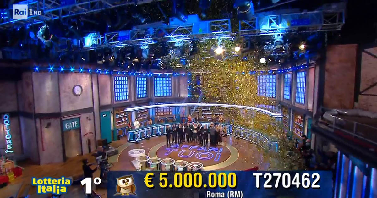 Nell’attesa dell’estrazione dei premi principali della Lotteria Italia durante la trasmissione Affari Tuoi condotta da Stefano Di Martino è giunta quella del premio speciale da 300.000 euro. A vincerlo il biglietto numero M291089 venduto a Auronzo di Cadore, in provincia di Belluno. Vista la vendita di ben 9,6 milioni di biglietti per l’edizione 2025 verranno aggiudicati i classici 5 premi milionari, come lo scorso anno,  e altri 306 premi totali tra seconda, terza e quarta categoria. In totale, visti anche i 78 premi assegnati giornalmente, in questa edizione della Lotteria Italia i Monopoli hanno distribuito o distribuiranno 384 premi.